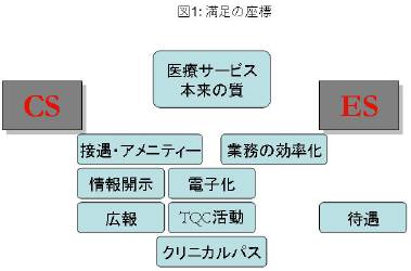 顧客満足( CS: Customer Satisfaction )の視点とともに、職員満足( ES: Employee's Satisfaction )、紹介者満足( Dealer's Satisfaction )が等しく機能しなければ十分なものとはいえないであろうし、さらにその上位概念として社会の満足( Social Satisfaction )がなければ、われわれ医療機関の存在意義はなくなるものと考える。もし、社会が医療費抑制を望み、病院淘汰を望むならば、われわれはそれに従うことが最大の顧客満足につながっていくということになるかもしれない。