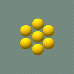 黄色い点は分子を表します。左右上下の矢印の付いた分子は,マウスでドラッグすることによりコントロールできます。ちょうどその分子をつかんで引っ張る要領です。そのようにしてこの分子を中央の分子集団(結晶)にまずはぶつけてみて下さい。分子の動きが激しくなり,分子集団の状態が変わります。矢印の付いた分子はいつでもコントロールできますので,気の向くままいろいろな場合を試してみて下さい。