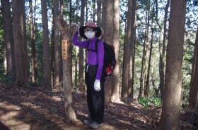 高尾で下りて北口のバス停に行くと、小仏行きバスには、もう長蛇の列だった。出足が遅いと、人が多い。今はコロナ問題で映画も図書館も閉まっていて、いろんな催しも中止で、山くらいしか行くところが無いのだ。ここのバス乗り場には回転車台がある。バスは満員になった。乗るのをあきらめた人が数人いたようだ。9:12発だが少し遅れて出た。途中の乗降も時間がかかって、日影には 9:35着。準備して 9:40出発。小仏方向に少し進むと左に林道が分かれる。ここを入ると城山や高尾山に行ける。さらに進み、中央線のガードをくぐって三叉路を右に入る。梅林は今年はコロナで開園しない。梅林前の駐車場の奥から山に取り付く筈だが、資材置き場になっていた。隙間から入り、奥に行くと階段があるので、そこから入る 9:50。