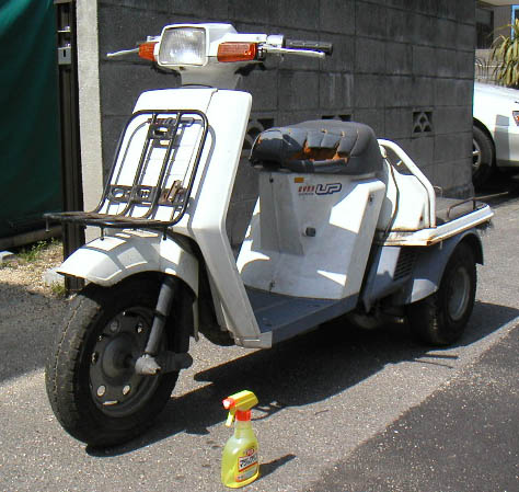 知ってる人は知ってるがジャイロには3種類、ジャイロX、ジャイロUP、ジャイロキャノピーが存在する。まー、Xの改造はどうもこの30代のオッサンには合いそうにない。キャノピーもどうもピザ屋のイメージが離れない。ってんで酒屋のオッサン号UPを探すことにした。このジャイロUP、トレッドが一番広くって改造するにはお手頃。ハブにナットをカマすだけでミニカー登録の基準を満たしてしまうのだ。