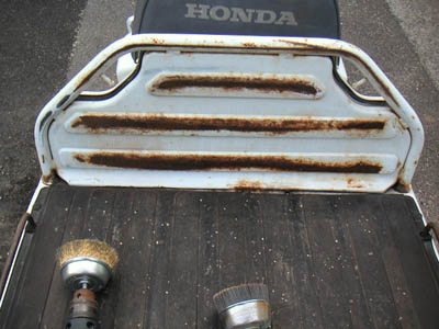 荷台もワイヤカップで磨いて再塗装しました。まー、その内下から錆が浮いてくるだろうけど、そんときゃまた塗るさ。