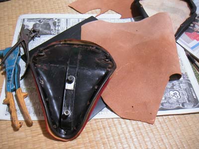 ソロシートが破れまして、確かJammar辺りで売ってた奴だと思うんですがね。買い換えると金がかかるので,自分で張り直す事にしました。 |