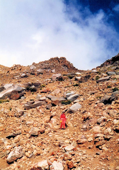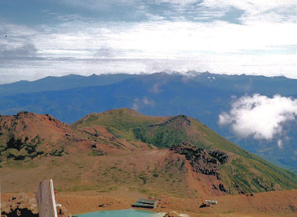 上 頂上よりの展望 左 剣が峰 下 2014.09 噴火後