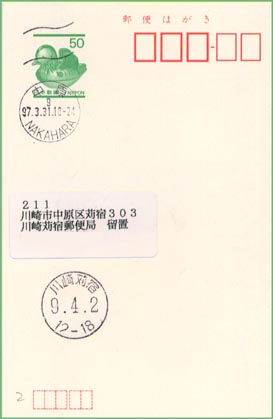 | [消印] | 中原局 平成9年3月31日 18−24 | |
