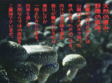 私共は食品をあずかる仕事にたずさわっている以上、責任をもって、”食は力だ”をモツトーに原木栽培にこだわります。